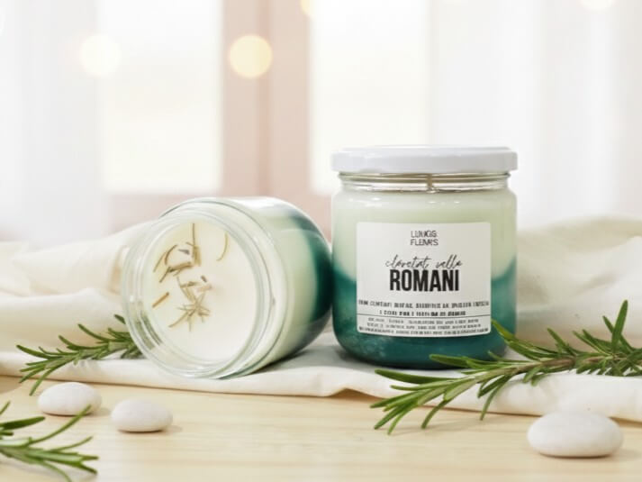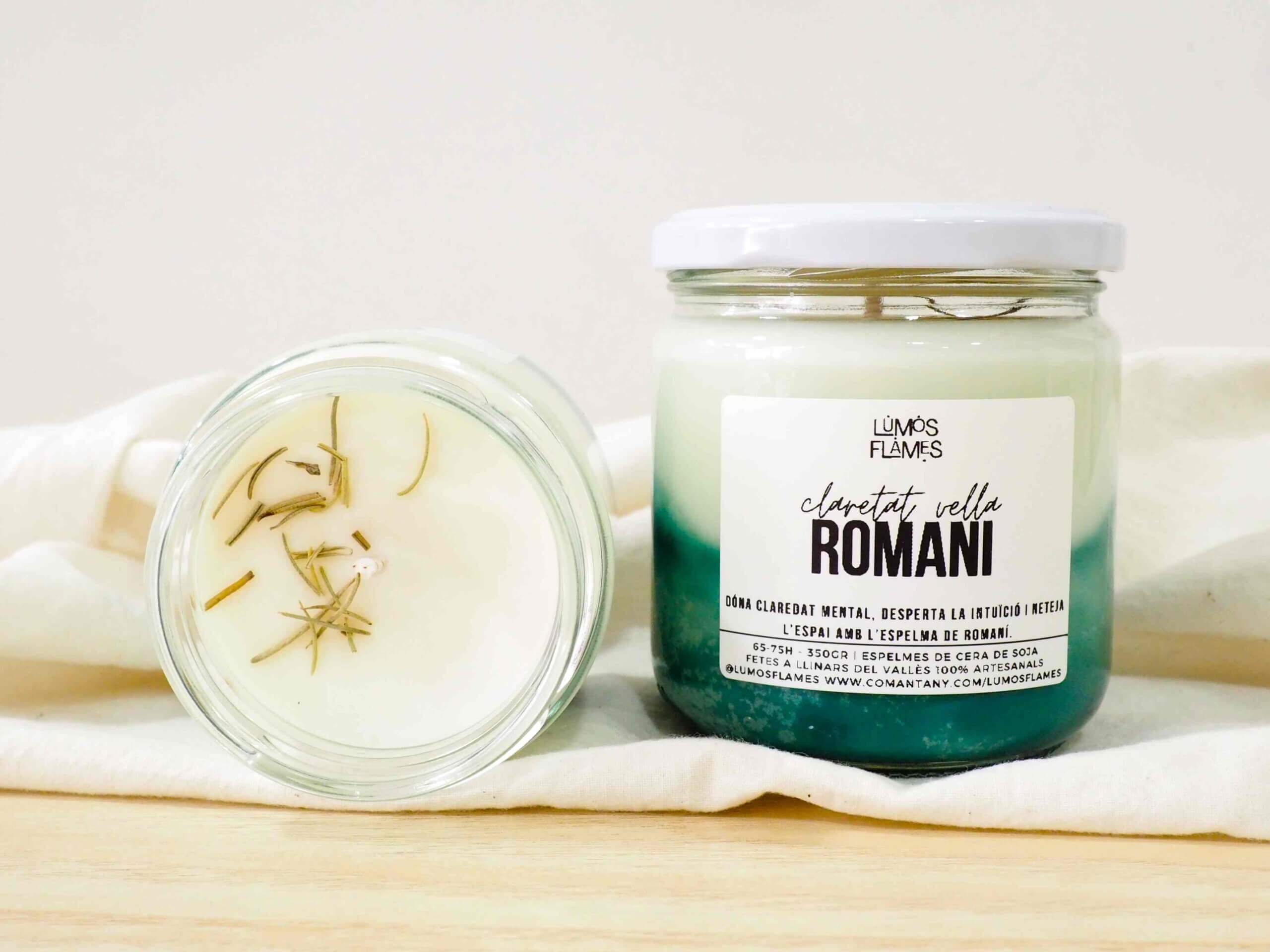 Vela de Romero. Desde la antigüedad, el romero ha sido símbolo de fuerza, protección y claridad mental. Su aroma fresco y penetrante no solo purifica el ambiente, sino que también eleva el ánimo, favorece la concentración y ahuyenta las malas energías.